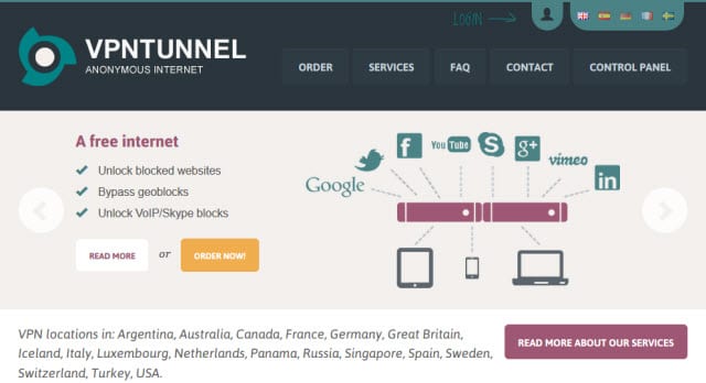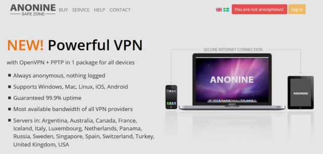 GT Guard 位于德国。TheSafeTy 支持 Windows、Mac 和 Linux,以及 iOS(iPhone、iPad 和 iPod)设备。突破网站地域限制,无论您身在何处,都可以欣赏您最喜爱的视频。他们还有适用于 iOS(iPhone、iPad、iPod Touch)和 Android 用户的 Spotflux 应用程序。